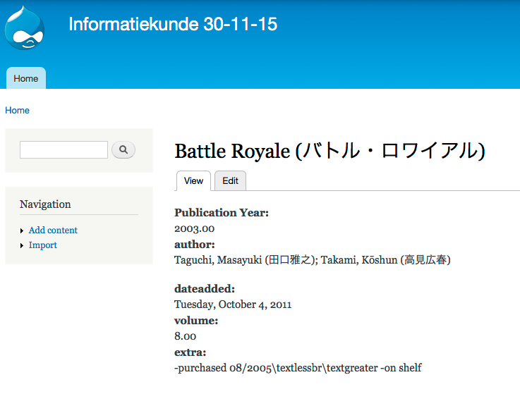 (zie 3. opkuisen met openrefine) waarom zijn deze data 'dirty': oorspronkelijk aangemaakt in een andere applicatie (biblio module van drupal), zijn daaruit geïmporteerd; over de jaren heen zijn gegevens door verschillende personen toegevoegd, met elk hun eigen workflow en opvattingen; door tijdsgebrek zijn niet altijd alle velden ingevuld