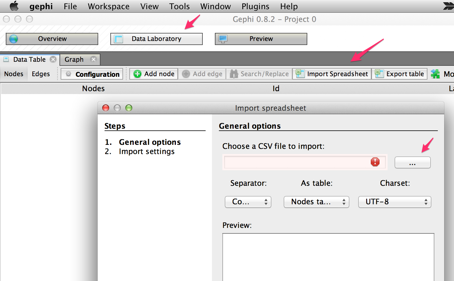 - installeer Gephi Let wel: Gephi werkt alleen met Java 7, niet met Java 8. Java 7 is niet meer publiek downloadbaar. De Java 7 versies voor Mac en Windows kan je op Toledo vinden (onder cursusdocumenten in gezipte vorm). Verwijder Java 8 en installeer deze versie van Java 7 op je PC/Mac (eerst zip file uitpakken). Dan zou Gephi moeten werken. Voor Windows-gebruikers is er ook deze howto.