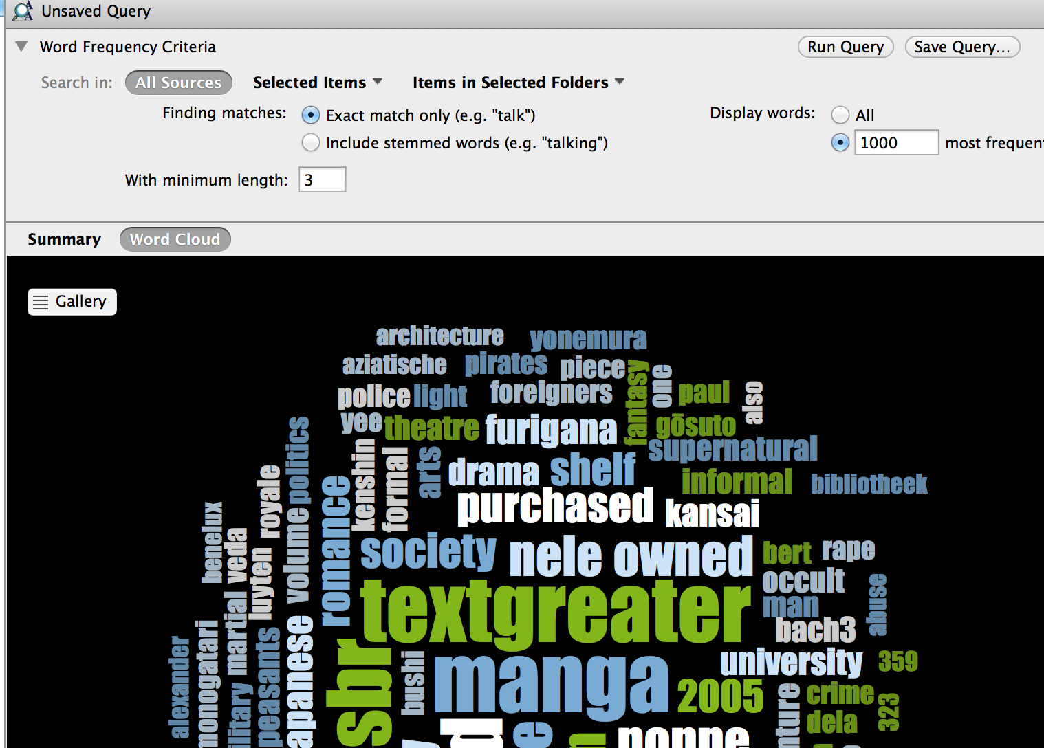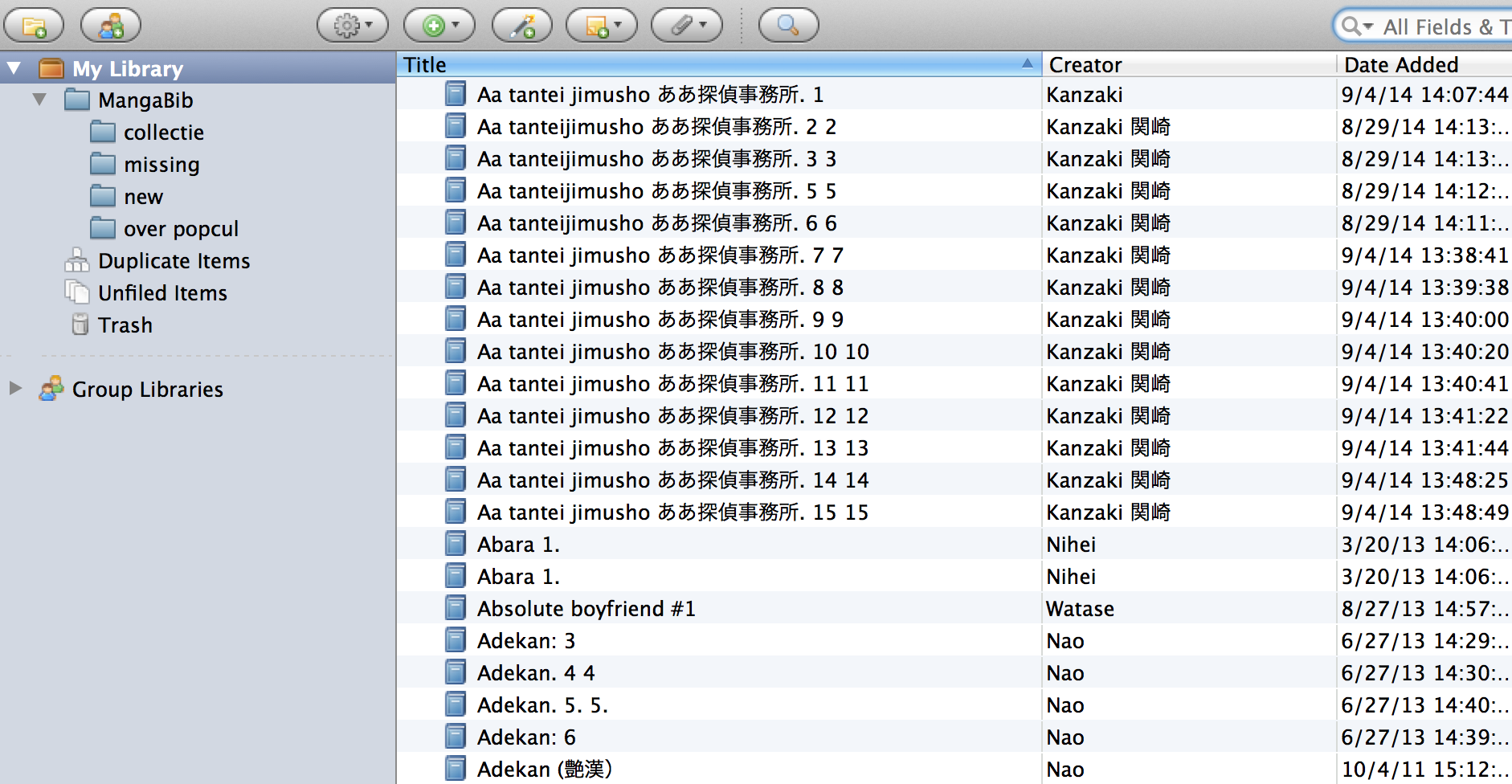 - als dataset gebruiken we de zotero database van de mangabibliotheek japanologie (3045 items)
